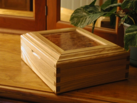jewelry box used finger joints, piano hinges, and was made of pine. However,
