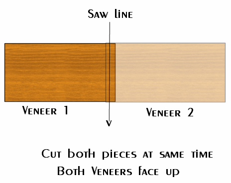 My opinion is that the best jointing method requires a veneer saw. You'll find these saws very easy to use. And though they are made for right handed users and though I am a lefty, I've found little difficulty in using my right hand for the work. A veneer saw is not an expensive tool yet it cuts a perfect seam every time if it's properly sharpened. Just make sure the saw has the correct tooth profile before you begin. Click here for more information regarding blade grinds. For the most pleasing effect, the veneers should be laid side by side with one veneer face up and the other face down (with the same edges touching each other). This is called book matching. This way, one veneer is mirroring the other. For straight grained veneers, this minimizes the visual effect of using multiple veneers to lay up a single panel. If you are using a figured veneer (especially a burl veneer), book matching can uncover some very intriguing patterns. The Veneer Sawing Technique The saw is designed to cut on the pull stroke only. Start in front of the veneer so the blade is already in motion when it comes in contact with the veneer. Place adequate pressure downward on saw and be certain to keep it pressed against the straight-edge. It typically takes 4 to 7 passes with most species to cut through a veneer. Keep the saw moving past the veneer so the ends are cut cleanly. This method has always given me perfect results.